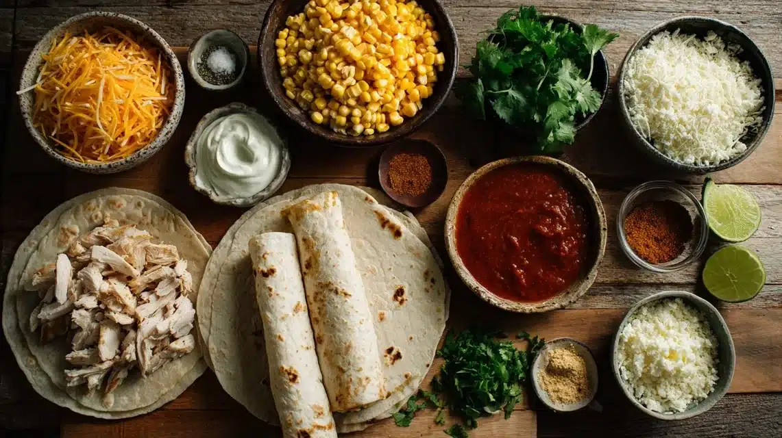 Here’s everything you’ll need to pull together these Street Corn Chicken Enchiladas — nothing fancy, just honest ingredients that work: